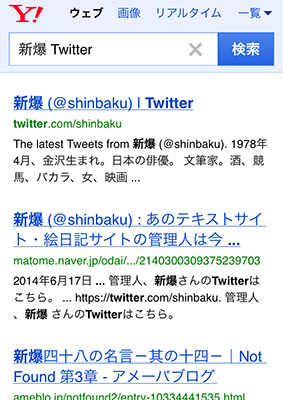 「Twitterとかやってないのかな?」と思って、「新爆 Twitter」で検索したらあっさり見つかった