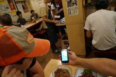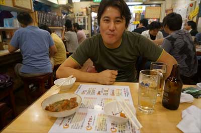 新爆さんの話を聞く僕。撮影は新爆さん。場所は新爆さん行きつけの上野の飲み屋