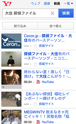 「大住 探偵ファイル」で動画検索。体を張ったさまざまな実験を行う大住さんが出てくる